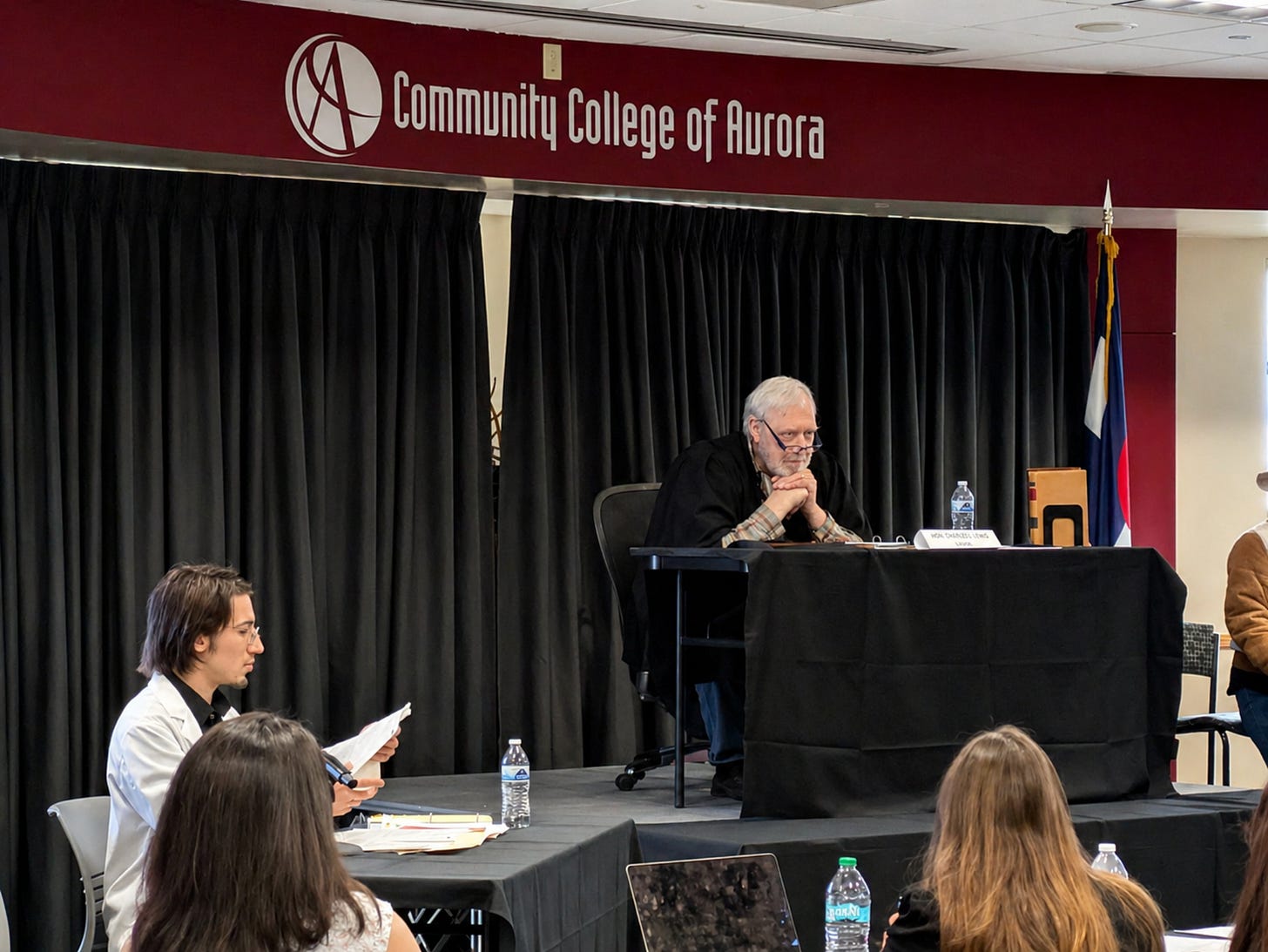 The Spring 2026 Mock Trial, held April 25 at the CentreTech Rotunda, turned a campus common space into a courtroom for The People of the State of Colorado v. Peyton Reid, a fictional criminal case involving fentanyl, a collapse and the death of a character named Victor Chase. The event brought together students from paralegal, criminal justice, translation and interpretation, anthropology and theater programs.